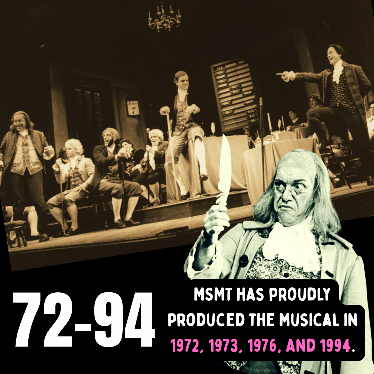 1776 is presented through special arrangement with Music Theatre International (MTI). All authorized performance materials are also supplied by MTI. www.mtishows.com